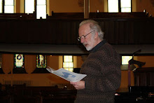 This is Marie Anderson. I am the musical director of Jonah, a musical-dramatic work by R. Murray Schafer. I have been part of a number of Murray Schafer productions and have found each work has been a transformative experience for me personally. As a musician you are challenged to read notation that looks more like a graphic image than a traditional musical score. Lines and images swirl across the page punctuated with words. Without any verbal explanation, the reader somehow understands that the music begins at the top of the page and moves downward, gathering momentum as it goes. Page 9 in the score is an example of Schafer's unusual score.It is shown on this blog right next to our poster. We began rehearsing this page last week in rehearsal. It is amazing how quickly these images come to life on the page.